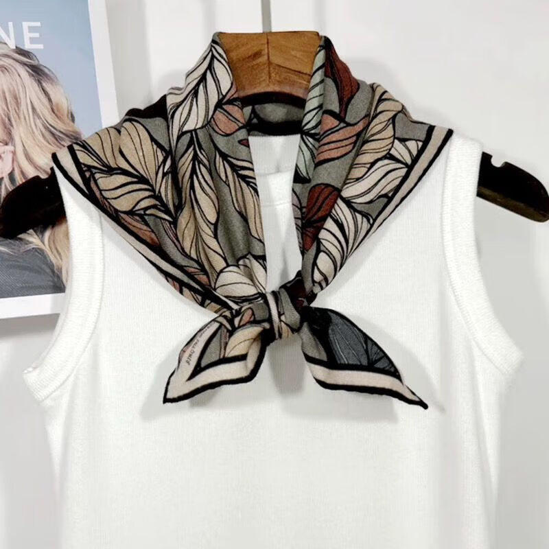 包邮 2025新款潮流提花围巾棉麻围巾美拉德彩色树叶方巾丝巾L7 彩色树叶提花 68*68